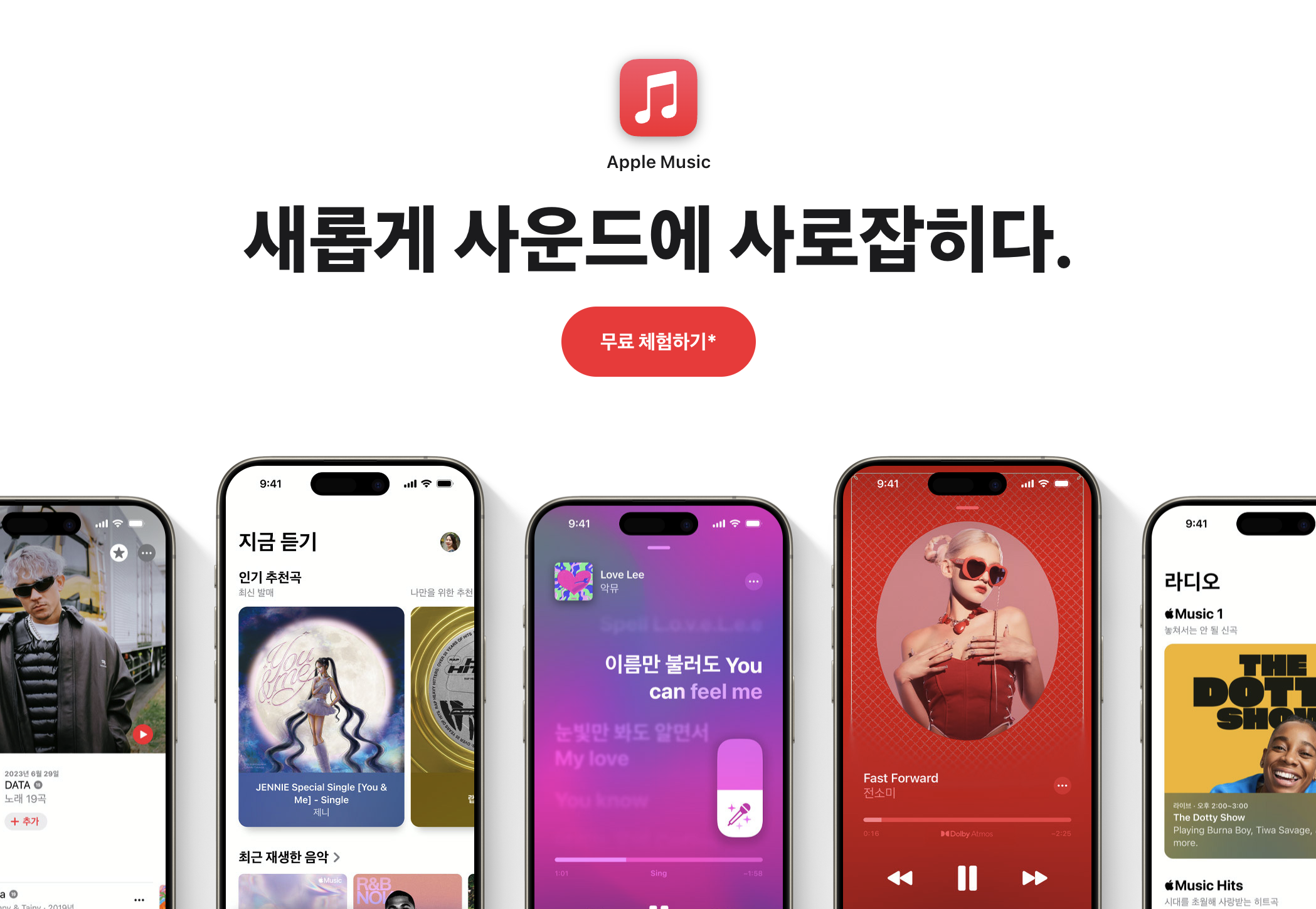 애플뮤직은 음악 스트리밍 서비스입니다. 오프라인에서 감상하고, 자주 사용하는 모든 기기에 연동됩니다.