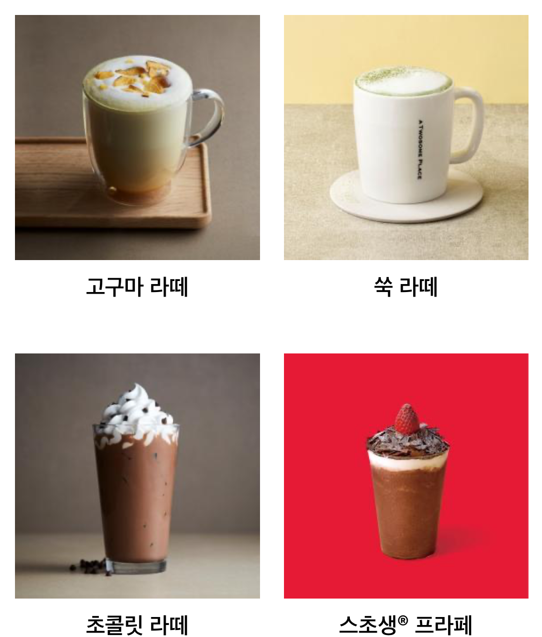 * 매장에 따라 메뉴가 있는 것이 있고, 없는 게 있을 수 있습니다!